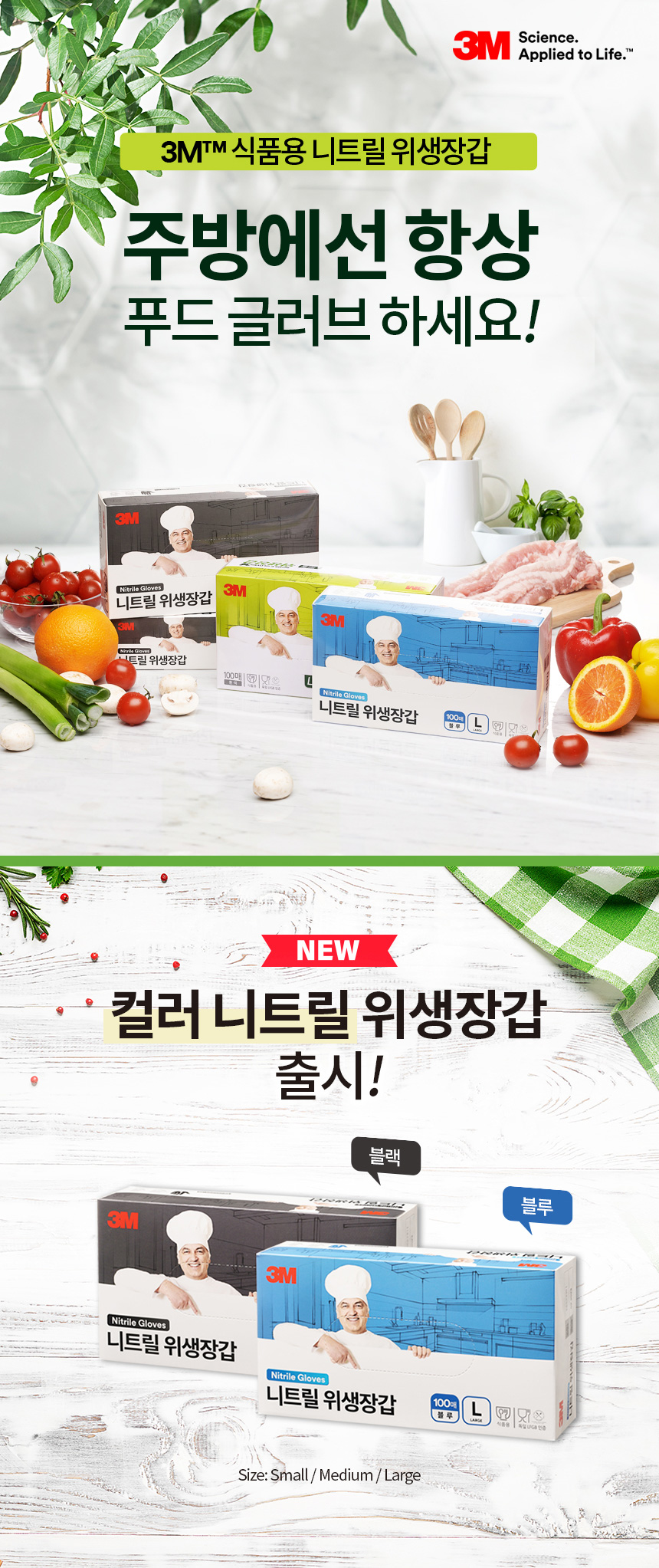 | 품명/모델명 | 3M 다목적 니트릴 위생장갑 100매 X 10팩 (소형,중형,대형) / 니트릴 위생장갑 100매 | ||